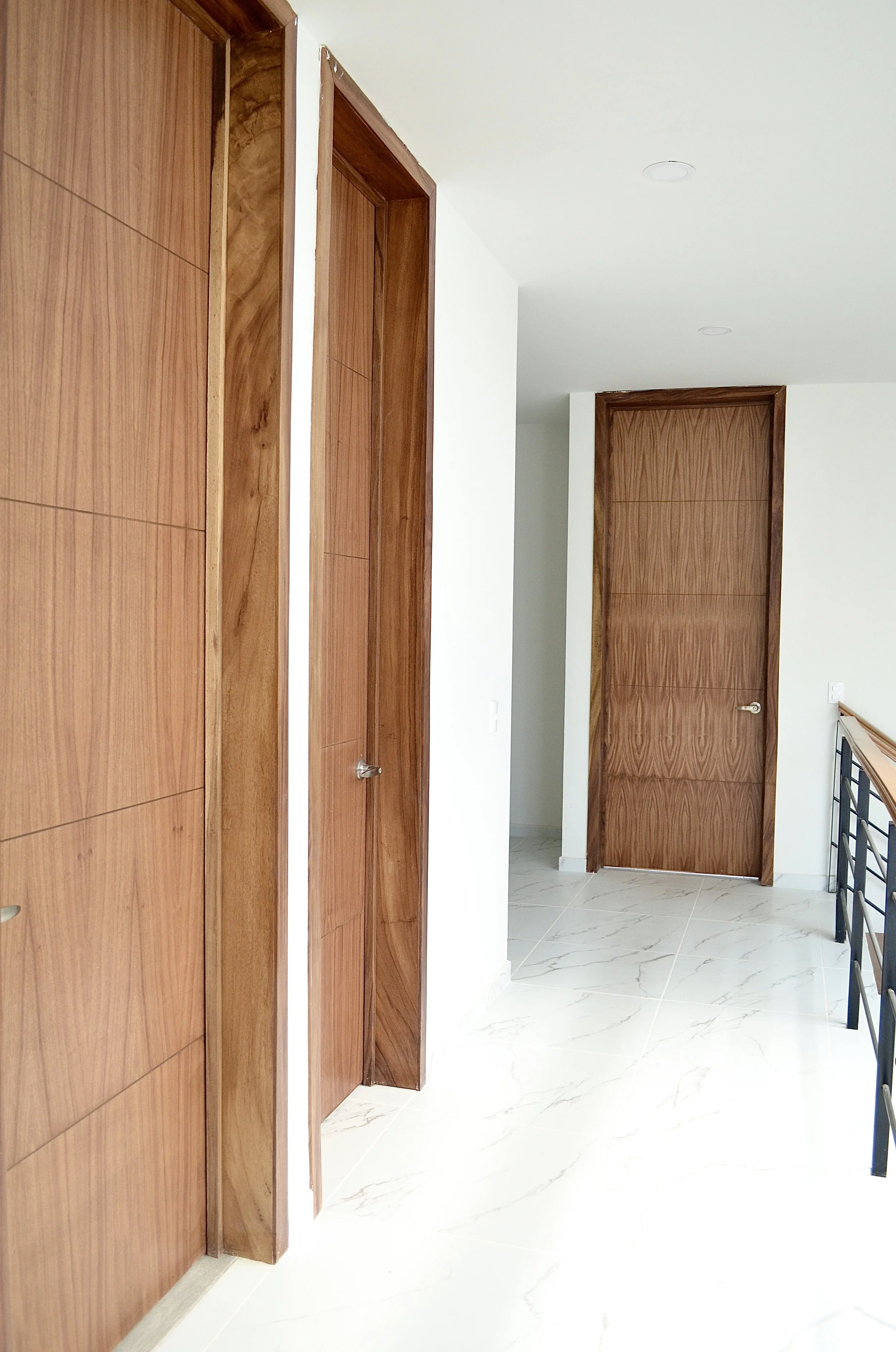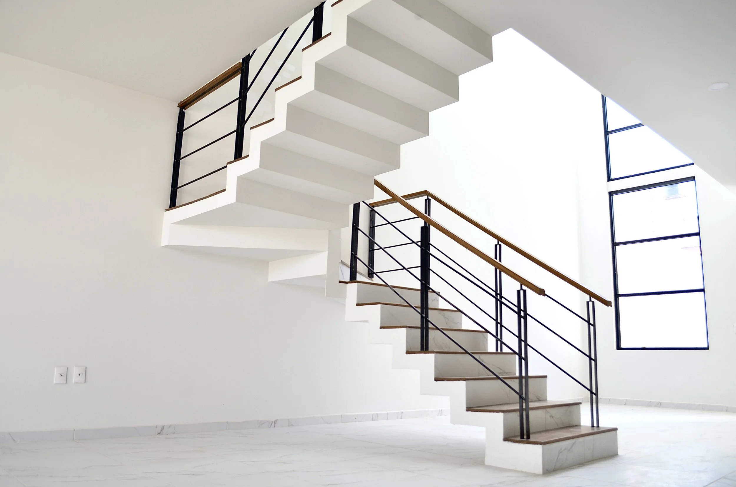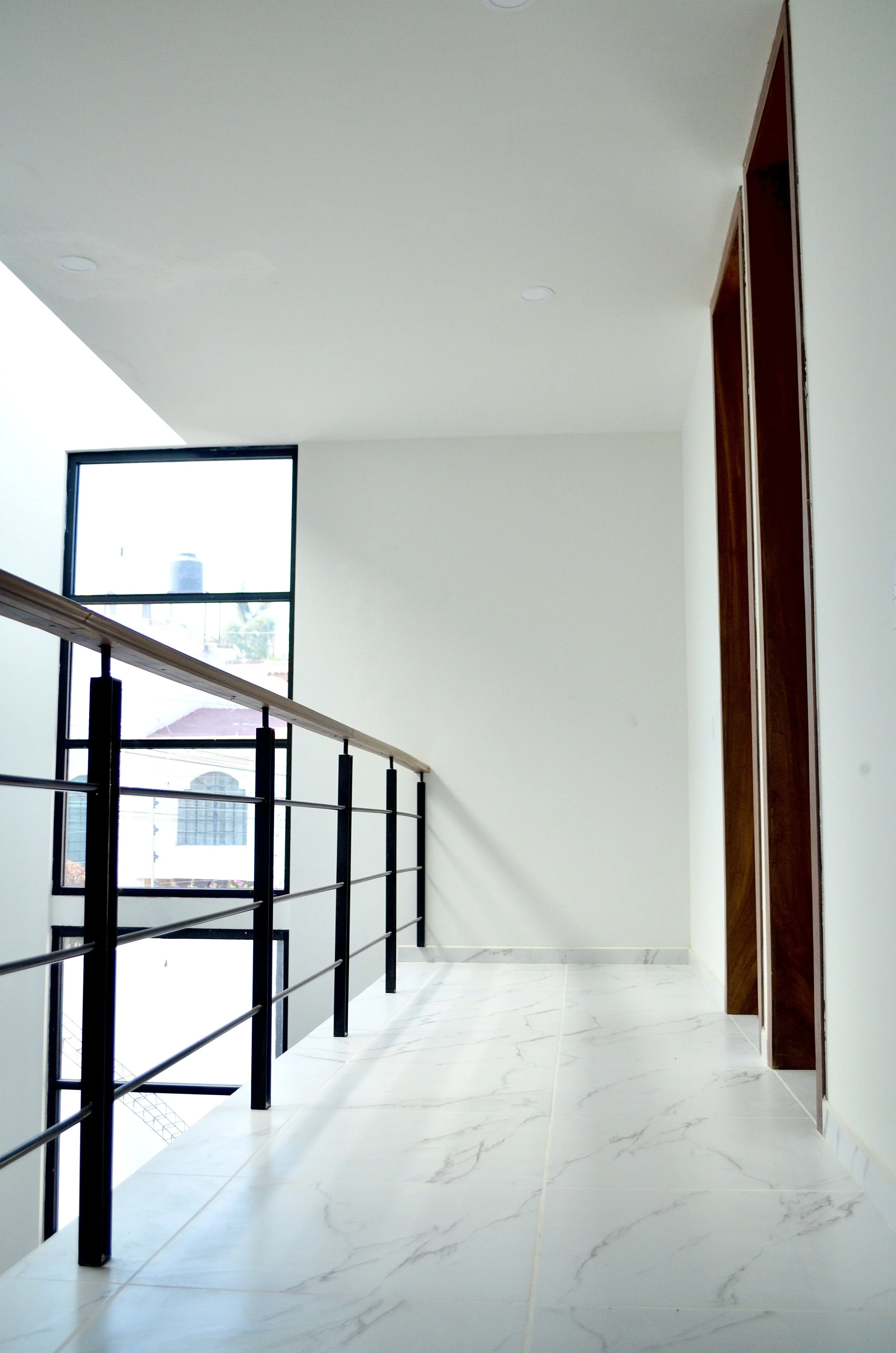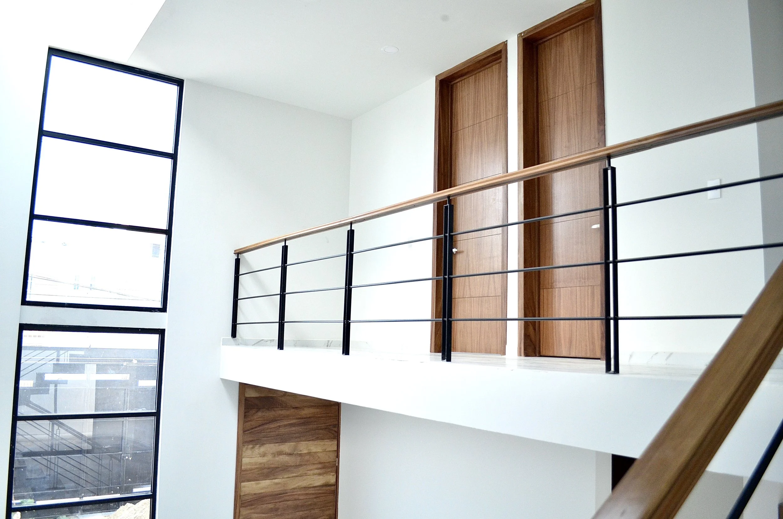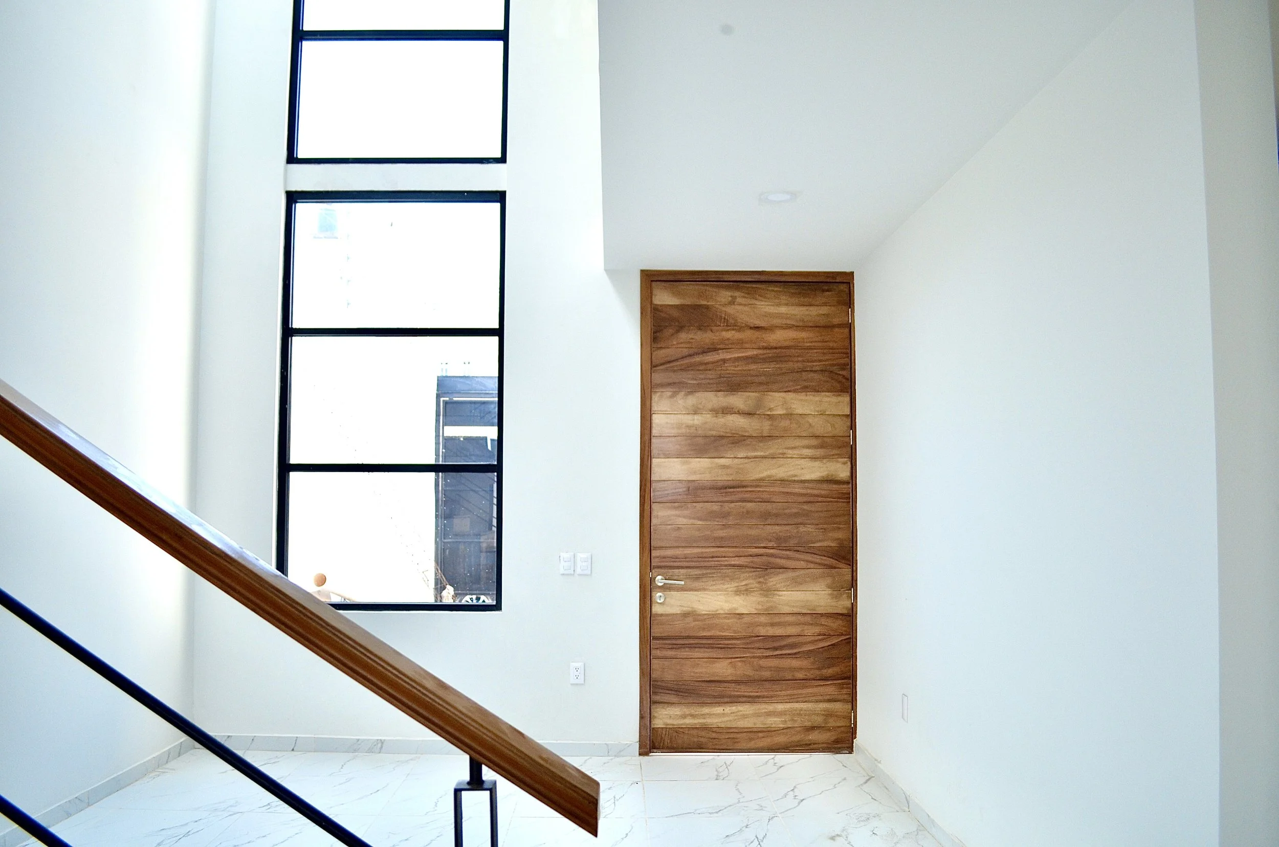 Esta casa se define por su amplitud vertical y su luminosidad natural: una escalera blanca flotante se convierte en el eje escultural del espacio, mientras los ventanales a doble altura bañan de luz cada rincón. El equilibrio entre materiales modernos, puertas de madera cálida y detalles decorativos como el baño con mosaicos hidráulicos crean una atmósfera acogedora y con carácter, pensada para quienes valoran diseño y autenticidad en su día a día.